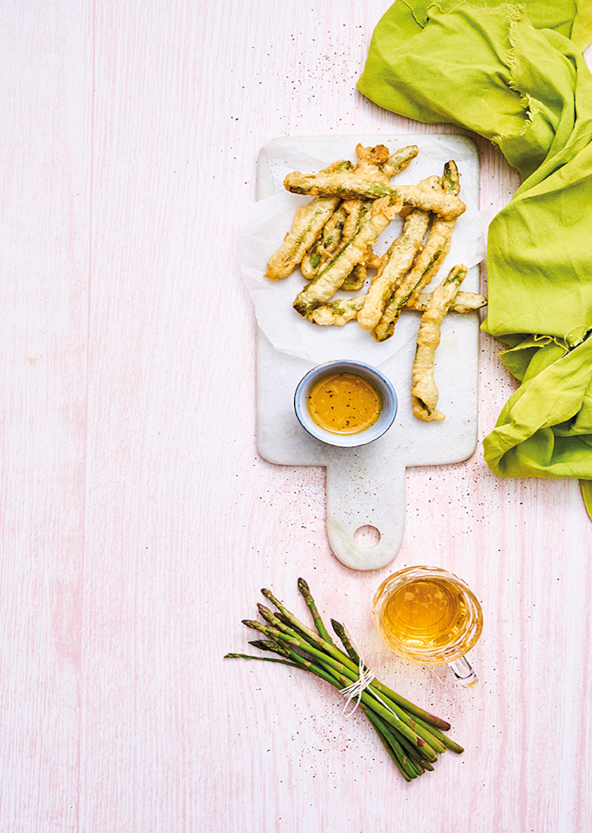 2. Immergete gli asparagi nella pastella e friggeteli in olio caldo fino a doratura. Scolateli su carta assorbente e salateli.