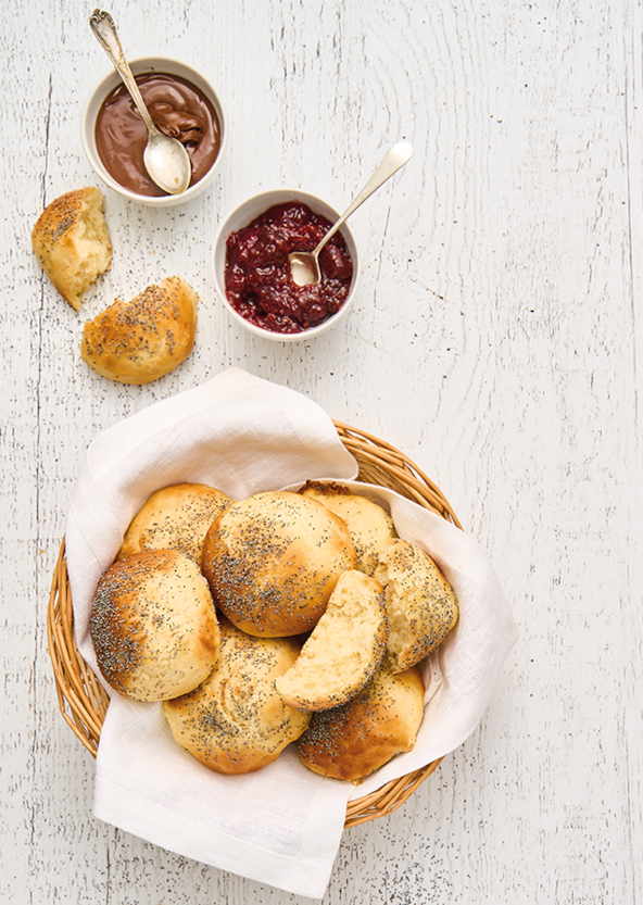 - Dopo la prima lievitazione formate delle palline e disponetele distanziate su una leccarda rivestita di carta da forno. Coprite e fate lievitare per altri 30 minuti. Spennellate con del latte e cospargete con i semi di papavero.