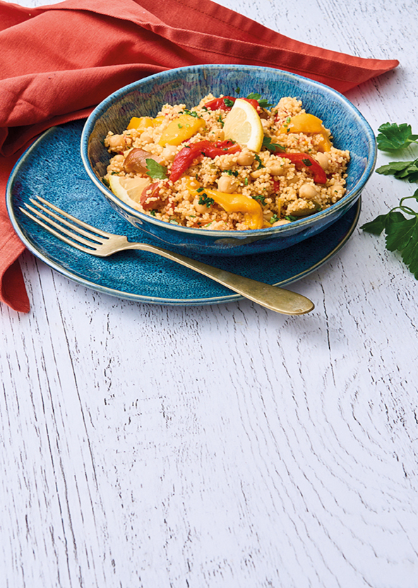 Cuscus all’harissa con peperoni arrostiti e ceci