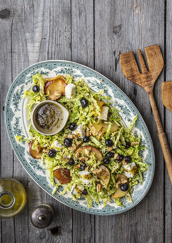 Insalata di verza, mirtilli, noci, Gorgonzola, senape, mela rossa