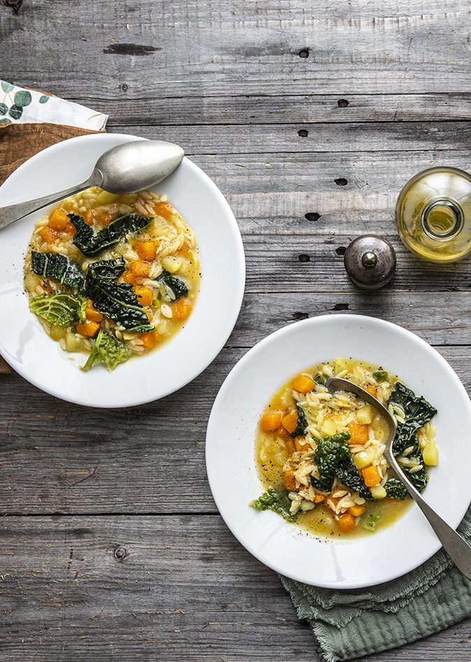 4. Servite la minestra ben calda e ultimate con un filo d’olio a crudo e una spolverata di pepe a piacere.