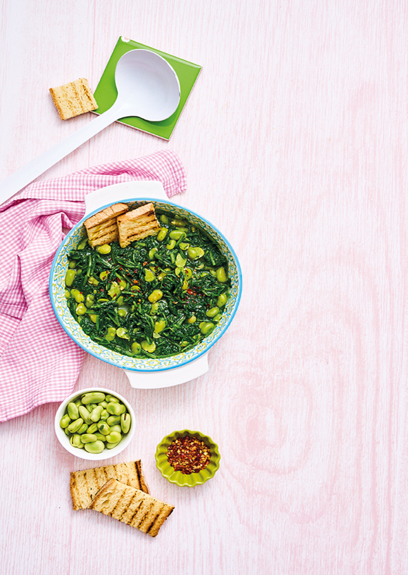 Minestra tiepida di cicorie e fave con crostini