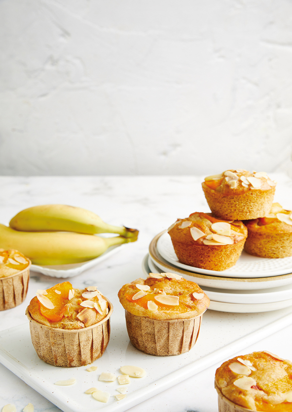 Muffin alle pesche, banana e lamelle di mandorle