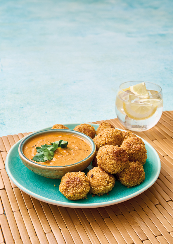 3. Nel frattempo frullate i peperoni con l’olio, l’aglio e qualche rametto di prezzemolo, regolate di sale e pepe e trasferite la salsa in una ciotolina. Usatela per accompagnare le polpette.