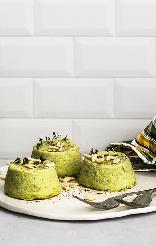 4. Spennellate con l’olio dei pirottini e cospargeteli di farina. Riempiteli per 2/3 con il composto. Cuocete gli sformatini per 25-30 minuti a bagnomaria, in una grande teglia con acqua già calda, in forno a 180-190°C.