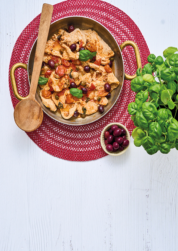 2. Aggiungete le olive, l’origano, i capperi dissalati, il basilico e lasciate cuocere per 10 minuti. Regolate di sale e pepe. Impiattate e ultimate con basilico fresco. Tenete da parte 4 fette per i sandwich del venerdì.