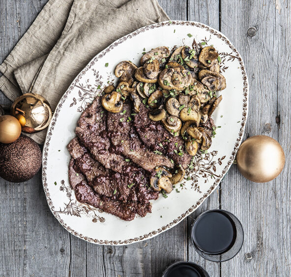 3. Servite la carne al vino rosso subito, insieme ai funghi, irrorandola con un po’ del fondo di cottura.