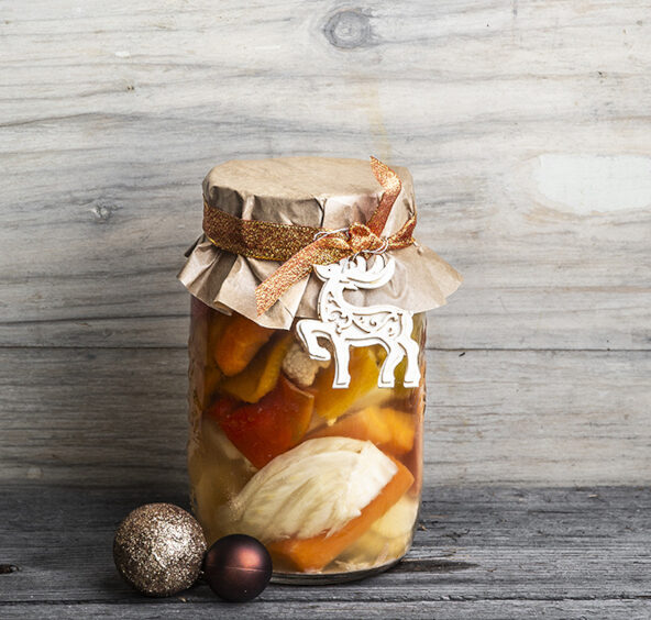 2. Distribuite le verdure nei vasetti di vetro già sterilizzati quando sono ancora bollenti, cercando di inserire anche il liquido agrodolce in modo che le verdure risultino completamente coperte.