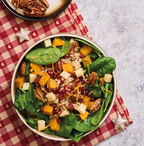 1. Fate rinvenire il farro riscaldandolo in padella o in microonde per un paio di minuti. Mescolatelo con gli spinacini e la zucca